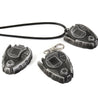 Each of our keychains are hand crafted with quality and care as our main priority. They start out as hand sculpted models that are then molded and cast with a special crystal resin and metal powder mix. This cast is then cleaned and aged using a method that brings out the design out to a shiny finish and leaves the piece with an antiqued feel. Each one is cleaned and secured to a hypoallergenic necklace or key chain using super strong adhesive, leaving the finish piece lightweight and durable!