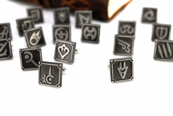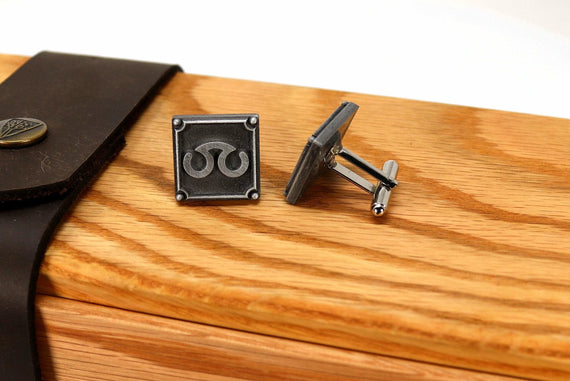 Each of our cufflinks is hand crafted with quality and care as our main priority. They start out as hand sculpted models then molded and cast with a special crystal resin and metal powder mix. This cast is then cleaned and aged using a method that brings out the design out to a shiny finish and leaves the piece with an antiqued feel. Each one is cleaned and secured to hypoallergenic stainless steel cufflinks using super strong adhesive, leaving the finished piece lightweight and durable!