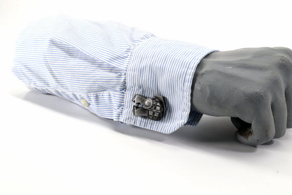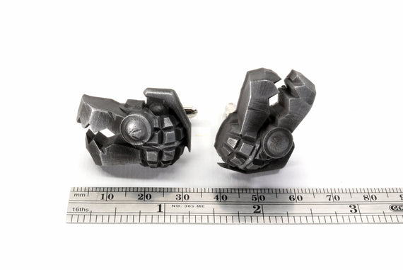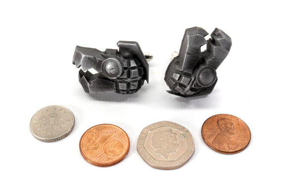 Each of our pieces is hand crafted with quality and care as our main priority. They start out as hand sculpted models that are then molded and cast with a special crystal resin and metal powder mix. This cast is then cleaned and aged using a method that brings out the design out to a shiny finish and leaves the piece with an antiqued feel. Each one is cleaned and secured to a hypoallergenic Cufflink using super strong adhesive, leaving the finish piece lightweight and durable!