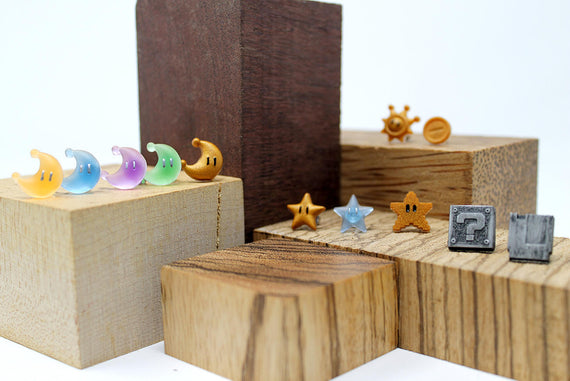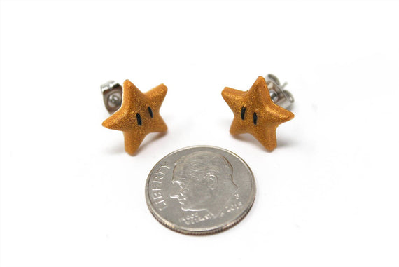 Power Stars, Mario's secret weapon for running his way through the mushroom kingdom! The Power Star gives him a burst of speed and strength that lets him destroy anything he touches. Now you too can sweep through the levels of life with a beautiful gold 8bit Power Star.