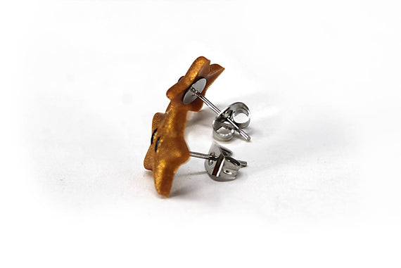 Each of our earrings are hand crafted with quality and care as our main priority. They start out as hand sculpted models that are then molded and cast with a special crystal resin. Each one is cleaned and secured to hypoallergenic studs using super strong adhesive, leaving the finish piece lightweight and durable!