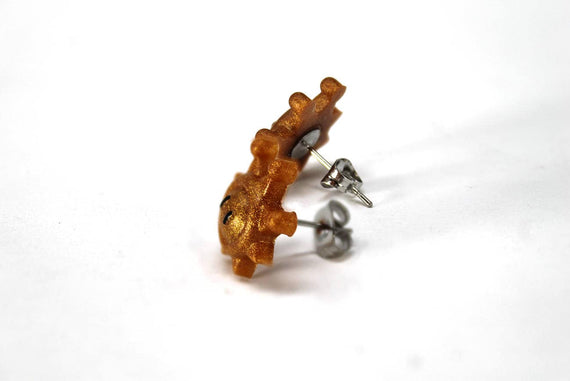Each of our earrings is hand crafted with quality and care as our main priority. They start out as hand sculpted models that are then molded and cast with a special crystal resin. Each one is cleaned and secured to hypoallergenic stainless steel studs using super strong adhesive, leaving the finish piece lightweight and durable!