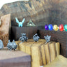 Each of our earrings is hand crafted with quality and care as our main priority. They start out as hand sculpted models that are then molded and cast with a special crystal resin and metal powder mix. This cast is then cleaned and aged using a method that brings out the design out to a shiny finish and leaves the piece with an antiqued feel. Each one is cleaned and secured to hypoallergenic stainless steel studs using super strong adhesive, leaving the finish piece lightweight and durable!