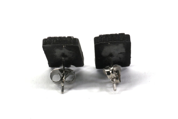 Each of our collectible earrings is hand crafted with quality and care as our main priority. They start out as hand sculpted models that are then molded and cast with a special crystal resin and metal powder mix. This cast is then cleaned and aged using a method that brings out the design out to a shiny finish and leaves the piece with an antiqued feel. Each one is cleaned and secured to hypoallergenic stud using super strong adhesive, leaving the finish piece lightweight and durable!