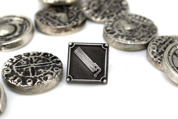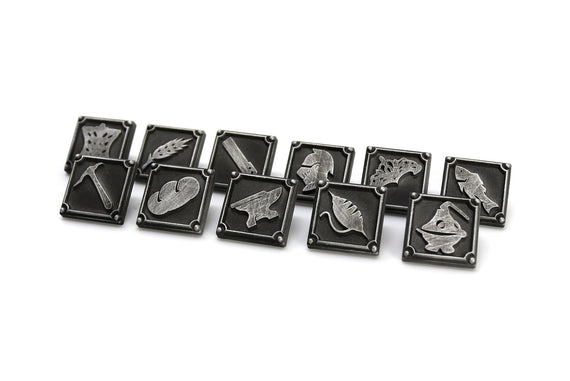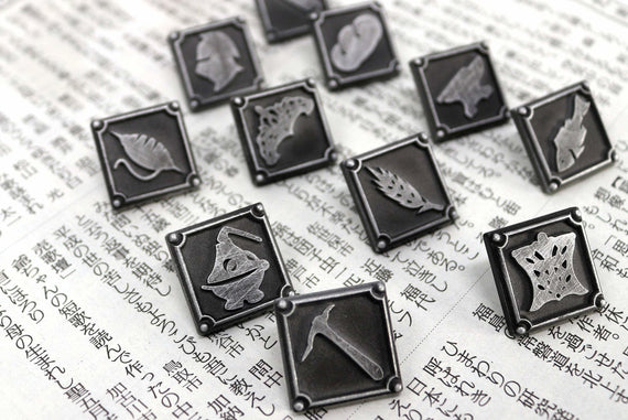 Each of our collectible pins is hand crafted with quality and care as our main priority. They start out as hand sculpted models that are then molded and cast with a special crystal resin and metal powder mix. This cast is then cleaned and aged using a method that brings out the design out to a shiny finish and leaves the piece with an antiqued feel. Each one is cleaned and secured to hypoallergenic pin using super strong adhesive, leaving the finish piece lightweight and durable!
