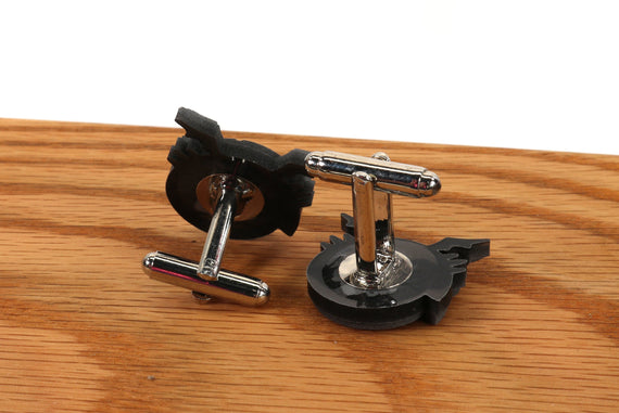 Each of our pieces is hand crafted with quality and care as our main priority. They start out as hand sculpted models that are then molded and cast with a special crystal resin and metal powder mix. This cast is then cleaned and aged using a method that brings out the design out to a shiny finish and leaves the piece with an antiqued feel. Each one is cleaned and secured to a hypoallergenic Cufflink using super strong adhesive, leaving the finish piece lightweight and durable!