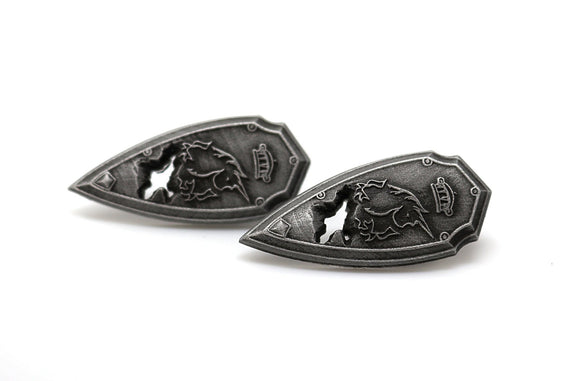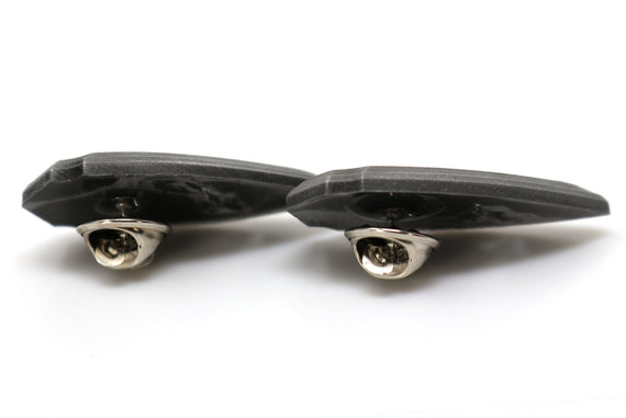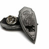 Each of our collectible pins is hand crafted with quality and care as our main priority. They start out as hand sculpted models that are then molded and cast with a special crystal resin and metal powder mix. This cast is then cleaned and aged using a method that brings out the design out to a shiny finish and leaves the piece with an antiqued feel. Each one is cleaned and secured to hypoallergenic pin using super strong adhesive, leaving the finish piece lightweight and durable!