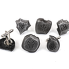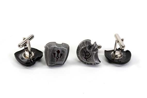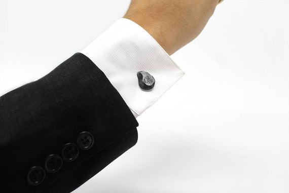 Each of our cufflinks is hand crafted with quality and care as our main priority. They start out as hand sculpted models then molded and cast with a special crystal resin and metal powder mix. This cast is then cleaned and aged using a method that brings out the design out to a shiny finish and leaves the piece with an antiqued feel. Each one is cleaned and secured to hypoallergenic stainless steel cuffs using super strong adhesive, leaving the finished piece lightweight and durable!