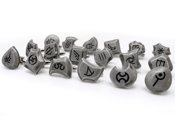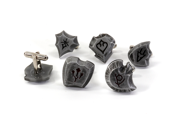 The perfect way to show off your FFXIV class pride in a classy way. Whether out at work or on the battlefield, these cufflinks give you an Aether filled bit of flair. Personalize your suit with the magic of your favorite FFXIV class pin. Each cufflink features a perfect representation of each individual job all accurate to the original stones we craft.