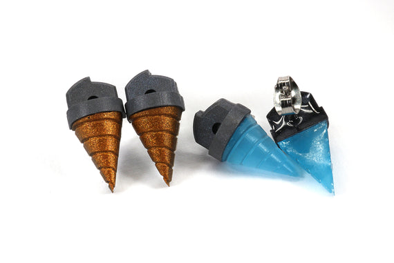 Each of our earrings is hand crafted with quality and care as our main priority. They start out as hand sculpted models that are then molded and cast with a special crystal resin. Each one is cleaned and secured to hypoallergenic stainless steel studs using super strong adhesive, leaving the finish piece lightweight and durable!