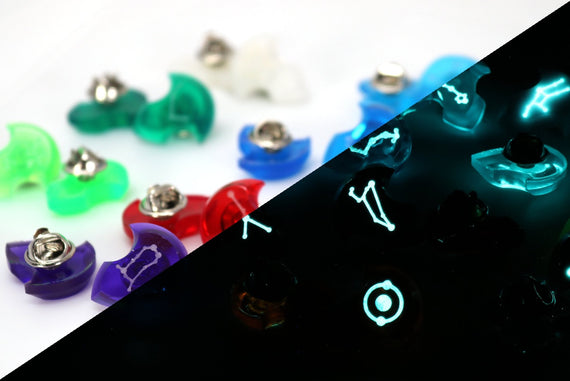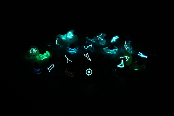 Each constellation stone is handmade with high quality crystal resin and hand polished for a nice shine. When fully charged, each stone emits a beautiful and bright Aetherial glow from its center emblem, making it uniquely stunning.