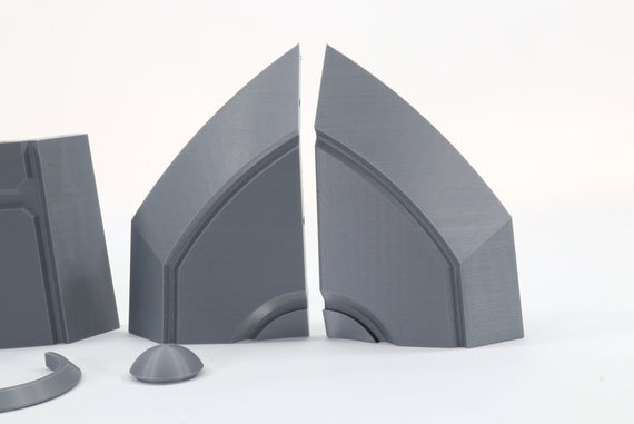 Please be aware the assembled prop pictures shown involved some finishing and support removal. Color of plastic will vary based on availability.